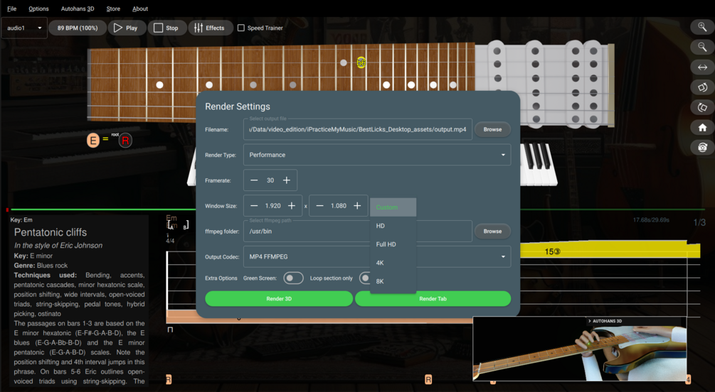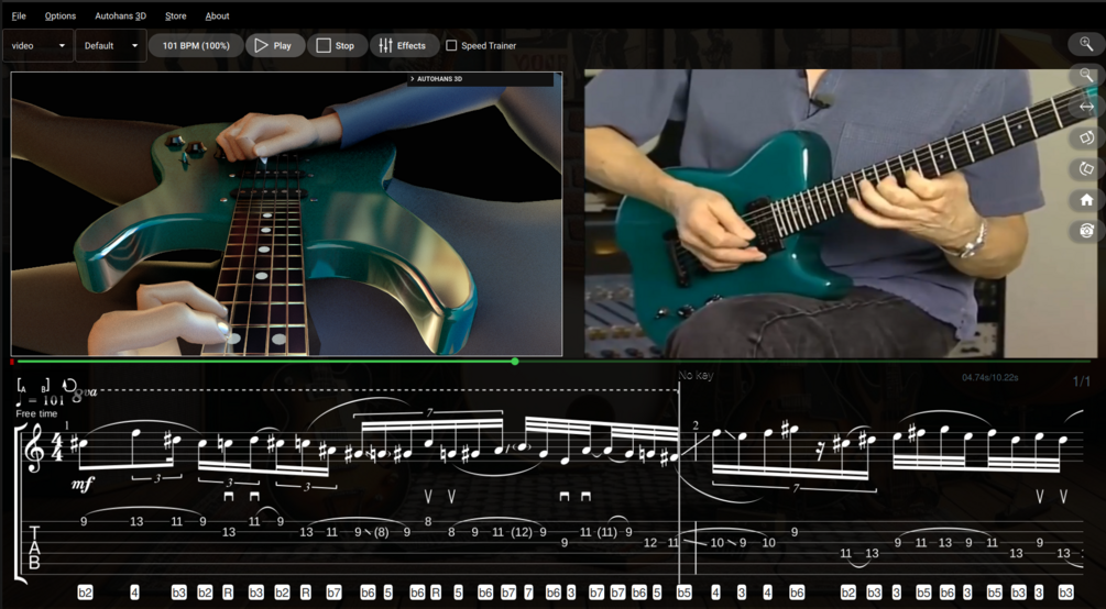 Start learning songs, licks, practice routines or exercises with style with video and tab in sync, loops, tempo and pitch controls and a speed trainer with our amazing software. New Feature! A 3D character now plays back your asongs!