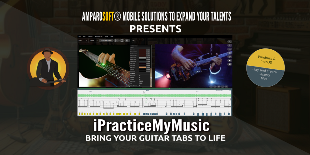 A .asong file is our innovative way of distributing compact musical content for learning without the need of external software. Usually, one needs different software to learn a lick/song, for instance, a PDF viewer, an audio/video player, and/or a tablature viewer. None of these tools can handle tab/partiture, video and audio in the same software and one needs to switch from one application to the next in order to learn the music. iPracticeMyMusic and asong files have everything you need in one place, for better and faster results while making your learning experience more enjoyable.